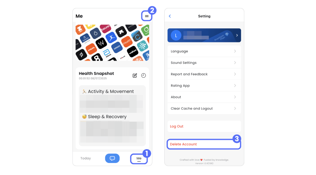 To delete your Theta Wellness account. Click the Me button in the bottom navigation bar. Click the settings button in the upper right corner. Then choose Delete Account.