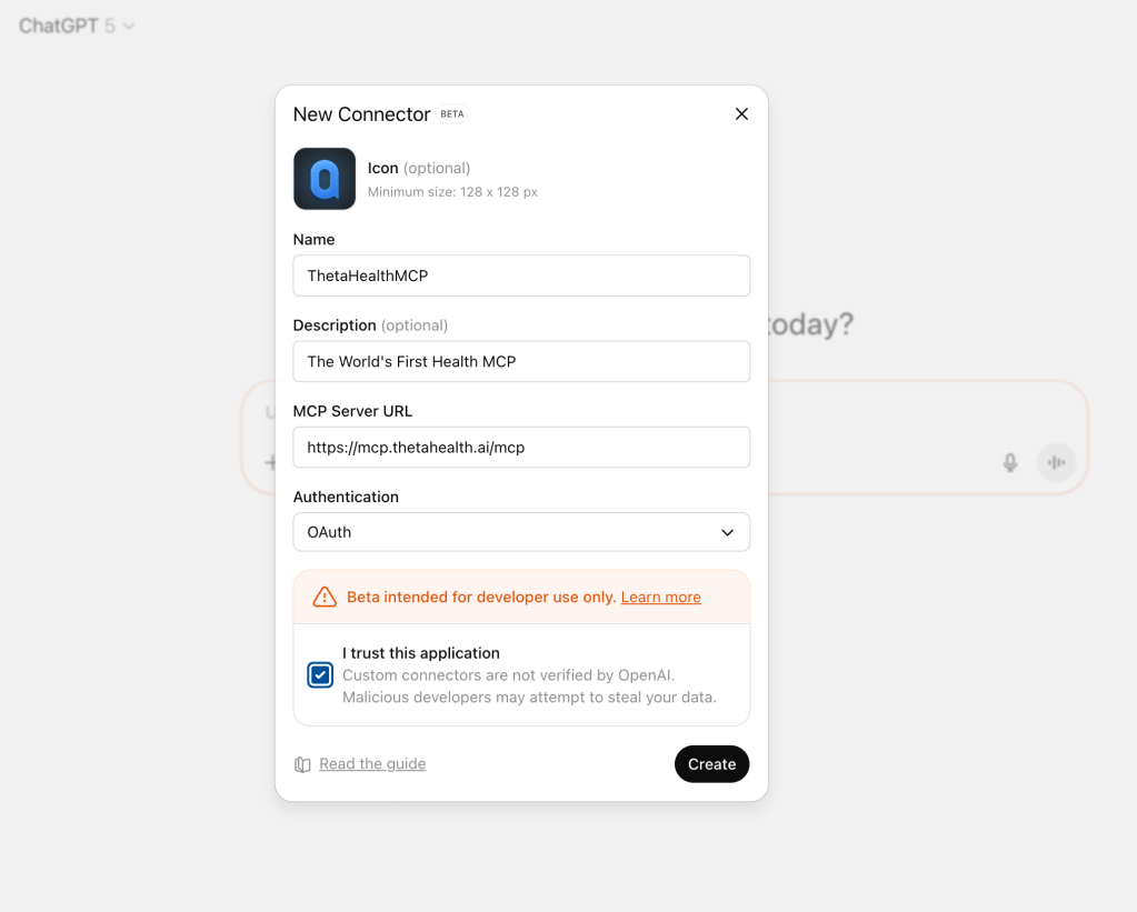 Tips: For a better experience, we highly recommend using the ChatGPT 5 – Thinking model, and asking ChatGPT to check your health data through ThetaHealthMCP (with no spaces between the words).